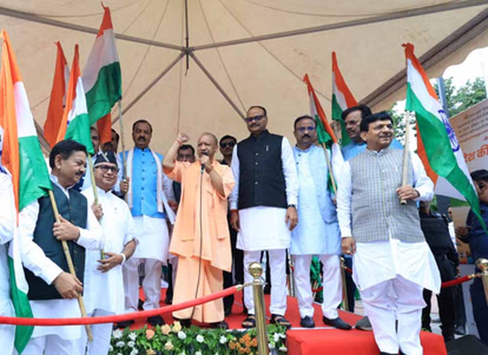 उत्तर प्रदेश के मुख्यमंत्री योगी आदित्यनाथ ने कहा कि देश आजादी के 78 वर्ष पूरे कर रहा है। आजादी के इस अमृतकाल में हर भारतीय के मन में संविधान, राष्ट्रीय प्रतीकों, राष्ट्रीयता, क्रांतिकारियों-महापुरुषों के प्रति श्रद्धा व सम्मान का भाव और प्रगाढ़ हो। यह हर जन, हर घर तक पहुंचे, प्रधानमंत्री नरेंद्र मोदी के आह्वान पर 'हर घर तिरंगा' और 'तिरंगा यात्रा' के माध्यम से इसे हम सभी देख रहे हैं।