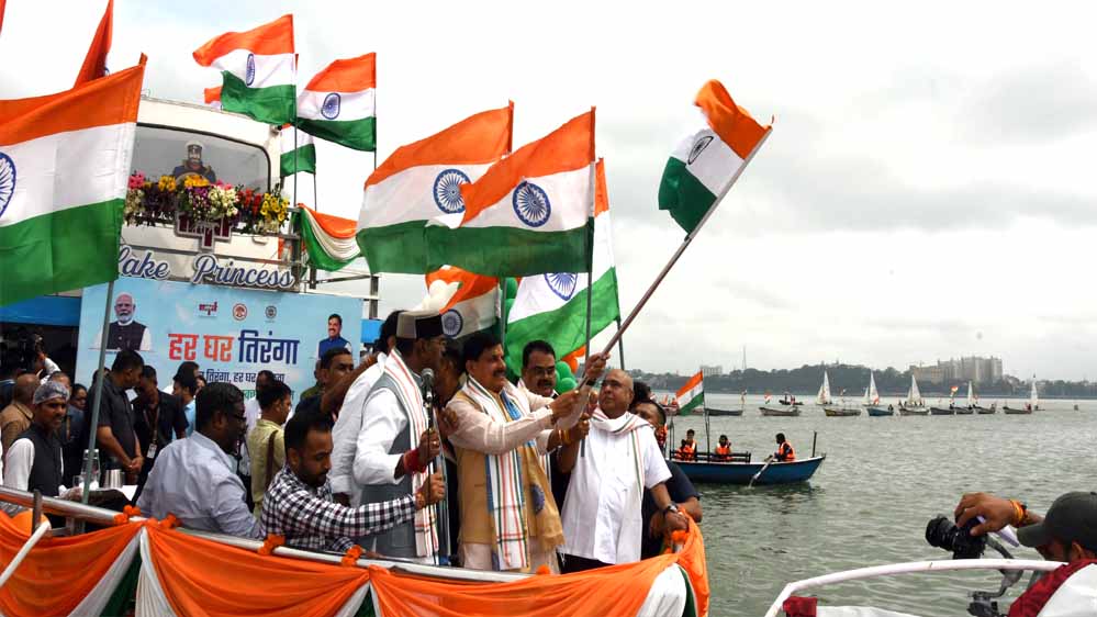 गौरतलब है कि, गुरुवार को भोपाल के बोट क्लब का नजारा बदला-बदला सा दिखाई दिया। सैकड़ों नावों पर सवार लोग हाथों में तिरंगा लिए देशभक्ति के रंग में रंगे दिखाई दिए। चारों ओर बज रहे देशभक्ति गीतों ने देखने वालों में उत्साह भर दिया। लोग खुद भी देशभक्ति के गीत गा रहे थे और अन्य लोगों को भी प्रेरणा दे रहे थे। कई लोग हाथों में देशभक्ति के नारों का पोस्टर लिए लोगों को देश-प्रदेश के विकास के लिए प्रेरित कर रहे थे। इस मौके पर मुख्यमंत्री डॉ. मोहन यादव ने कहा कि आज भोपाल के तालाब पर लहराते तिरंगे हमें ऊर्जा से लबरेज कर रहे हैं। यहां उठ रहीं लहरें हमें हमारे जन कल्याण के संकल्प को याद दिला रही हैं। ये लहरें हमें प्रधानमंत्री नरेंद्र मोदी के नेतृत्व में कदम से कदम मिलाकर आगे बढ़ने की प्रेरणा दे रही हैं।