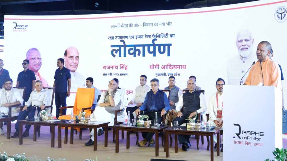 रक्षा क्षेत्र में आत्मनिर्भर भारत की दिशा में एक बड़ा कदम उठाते हुए रक्षा मंत्री राजनाथ सिंह ने शनिवार को गौतमबुद्ध नगर में रक्षा उपकरण एवं ड्रोन निर्माण इकाई, एयरक्राफ्ट इंजन और डिफेंस एयरोस्पेस टेस्ट फेसिलिटी का लोकार्पण किया। इस मौके पर मुख्यमंत्री योगी आदित्यनाथ भी मौजूद रहे। कार्यक्रम को संबोधित करते हुए सीएम योगी ने कहा कि शस्त्र और शास्त्र के समन्वय से ही राष्ट्र मजबूत होता है और यूपी रक्षा उत्पादन में अग्रणी भूमिका निभा रहा है। उन्होंने कहा कि यह नोएडा को डिफेंस हब के रूप में स्थापित करने की दिशा में मील का पत्थर साबित होगा, जो राष्ट्रीय सुरक्षा को नई ऊंचाई देगा।