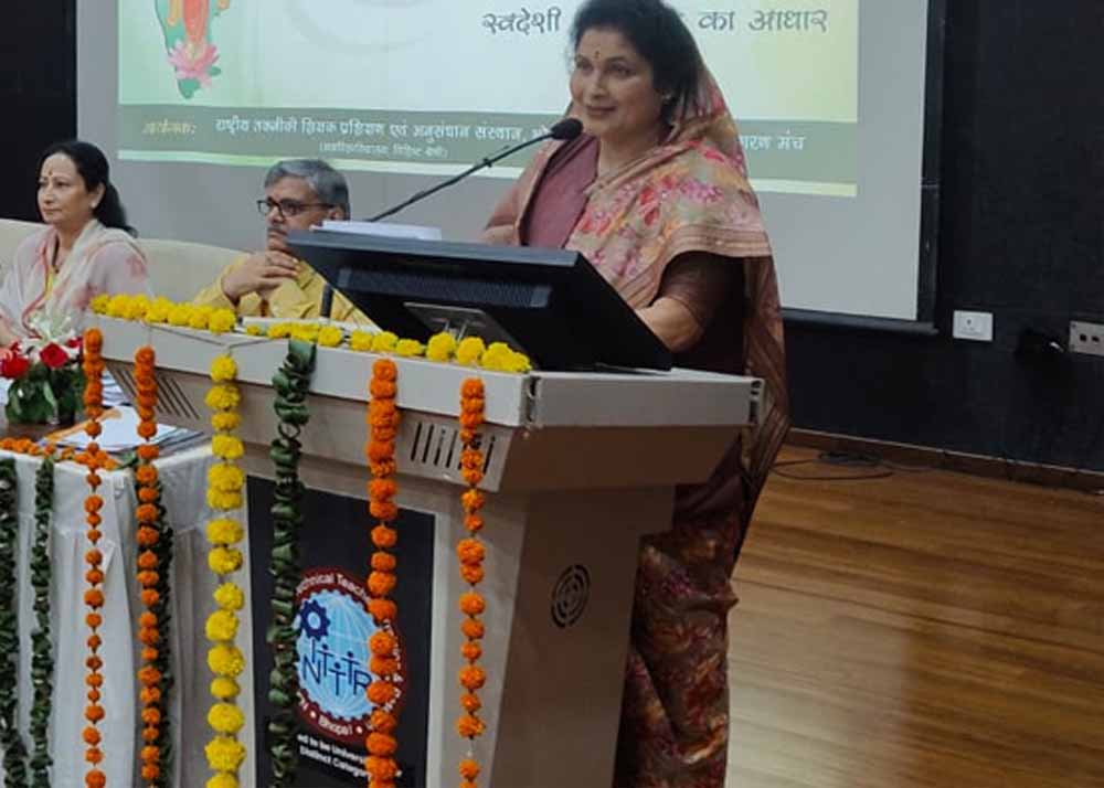 इस अवसर पर राष्ट्रीय संगठक स्वदेशी जागरण मंच श्री कश्मीरी लाल जी, अखिल भारतीय महिला प्रमुख स्वदेशी जागरण मंच श्रीमती अर्चना मीना, निदेशक एन. आई. टी. टी. आर, भोपाल प्रो. चंद्र चारु त्रिपाठी, डॉ. प्रतिभा चतुर्वेदी, डॉ. रश्मि विजय सहित कई पदाधिकारी एवं गणमान्य नागरिक उपस्थित थे।
