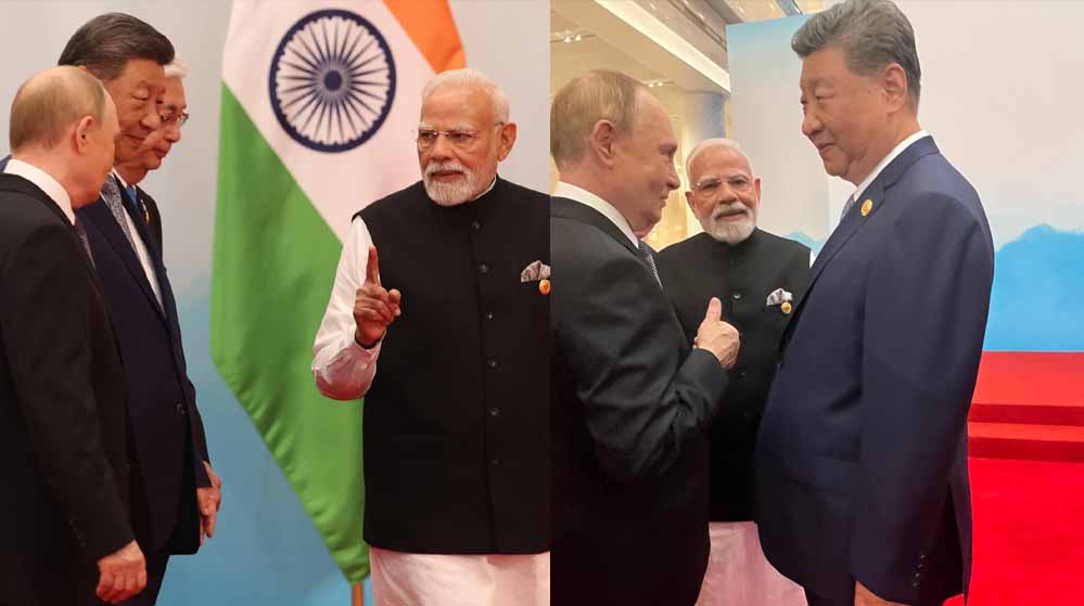चीन के तियानजिन में सोमवार सुबह नए वर्ल्ड ऑर्डर के तीन दिग्गजों की मुलाकात हुई. SCO मीटिंग के दौरान आज सुबह प्रधानमंत्री नरेंद्र मोदी, मेजबान चीन के राष्ट्रपति शी जिनपिंग और रूस के राष्ट्रपति पुतिन मिले. तीन नेताओं की गर्मजोशी भरी मुलाकात की ये तस्वीरें अमेरिकी राष्ट्रपति डोनाल्ड ट्रंप का ब्लड प्रेशर बढ़ा सकती है.