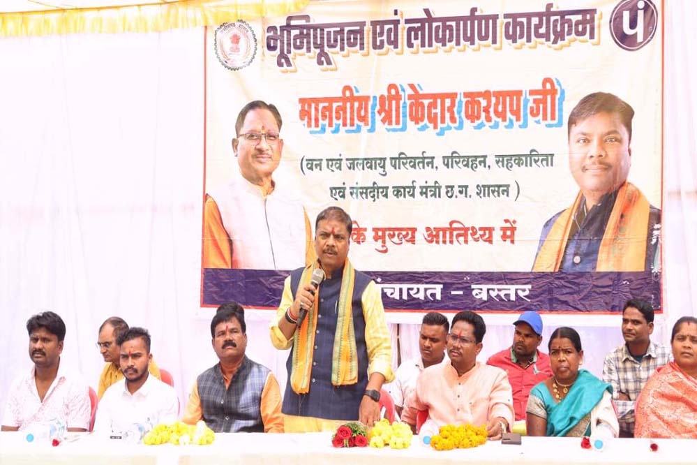 वन एवं जलवायु परिवर्तन मंत्री केदार कश्यप ने आज बस्तर विकासखंड के ग्राम चमिया में 48 लाख रुपए से अधिक की लागत वाले विभिन्न विकास कार्यों का भूमिपूजन किया। यह कार्य ग्रामीण इलाकों में सुविधाओं के विस्तार और अधोसंरचना को मजबूत करने के लिए किए जा रहे हैं। वन मंत्री कश्यप ने कहा कि मुख्यमंत्री विष्णुदेव साय के नेतृत्व में राज्य सरकार हर गाँव तक विकास पहुँचाने के लिए काम कर रही है। उन्होंने कहा कि सुशासन की सरकार में मातृशक्ति को विशेष सम्मान मिला है।