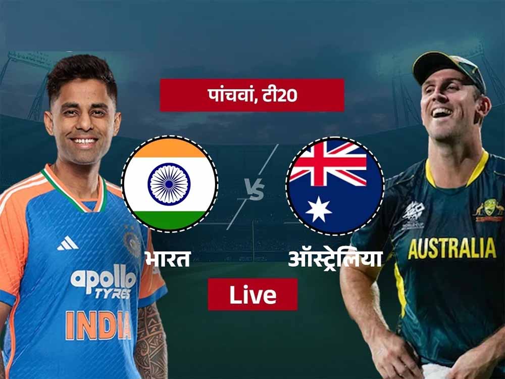 आज भारत और ऑस्ट्रेलिया के बीच पांचवां टी20 मैच खेला जा रहा है। दोनों टीमें ब्रिस्बेन के गाबा स्टेडियम में आमने-सामने हैं। ऑस्ट्रेलिया ने टॉस जीतकर भारत को बैटिंग का न्योता दिया है। ऑस्ट्रेलिया ने कोई फेरबदल नहीं किया जबकि भारत ने प्लेइंग इलेवन में एक बदाव किया है। भारत ने तिलक वर्मा को आराम देकर रिंकू सिंंह को मौका दिया है। यह भारत के लिए निर्णायक मैच है। सूर्यकुमार यादव की अगुवाई वाली टीम सीरीज पर कब्जा जमाने के इरादे से उतरी है। सूर्या ब्रिगेड ने पांच मैचों की सीरीज में 2-1 की बढ़त बना रखी है। पहला मुकाबला बारिश में धूल गया था। वहीं, मिचेल मार्श के नेतृत्व वाली ऑस्ट्रेलियाई टीम सीरीज बराबर करने की फिराक में होगी।