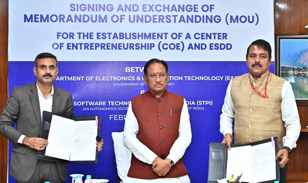 मुख्यमंत्री साय ने कहा कि युवाओं में उद्यमिता विकसित करने और उन्हें आईटी एवं आईटीईएस जैसे क्षेत्रों में विश्वस्तरीय अवसर राज्य के भीतर ही उपलब्ध कराने की दिशा में यह पहल की गई है। इस एमओयू के तहत राज्य में सेंटर ऑफ एंटरप्रेन्योरशिप (CoE) एवं इलेक्ट्रॉनिक्स सिस्टम डिजाइन एंड डेवलपमेंट (ESDD) सेंटर की स्थापना की जाएगी। उन्होंने कहा कि प्रस्तावित सेंटर ऑफ एंटरप्रेन्योरशिप के माध्यम से आर्टिफिशियल इंटेलिजेंस, वन एवं औषधीय उत्पाद आधारित मेडटेक, स्मार्ट सिटी समाधान तथा स्मार्ट कृषि जैसे चार महत्वपूर्ण क्षेत्रों में नवाचार और स्टार्ट-अप को प्रोत्साहन मिलेगा। साथ ही, एक अत्याधुनिक इलेक्ट्रॉनिक्स सिस्टम डिजाइन एंड डेवलपमेंट (ESDD) सेंटर की स्थापना की जाएगी, जो प्रति वर्ष लगभग 30 से 40 हार्डवेयर स्टार्ट-अप और एमएसएमई को प्रोडक्ट डिजाइन, प्रोटोटाइपिंग, कौशल विकास एवं क्षमता निर्माण की सुविधाएं प्रदान करेगा।