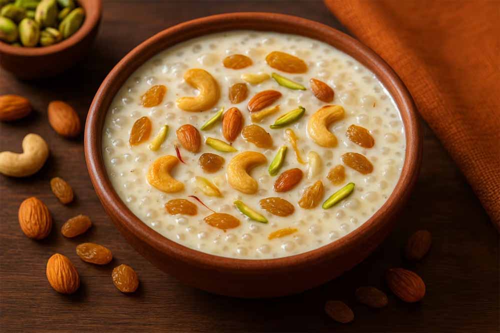 अब दूध और साबूदाने को लगातार चलाते रहें, ताकि साबूदाना बर्तन के तले में न चिपके। इसे धीमी आंच पर तब तक पकाएं जब तक साबूदाना पारदर्शी न हो जाए और खीर गाढ़ी न हो जाए।