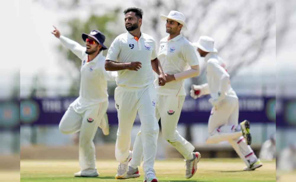 जम्मू-कश्मीर ने तेज गेंदबाज औकिब नबी की धारदार गेंदबाजी से कर्नाटक के शीर्ष क्रम को ध्वस्त करते हुए बृहस्पतिवार को यहां तीसरे दिन मयंक अग्रवाल के नाबाद शतक के बावजूद पहली पारी में मेजबान टीम का स्कोर पांच विकेट पर 220 रन करके अपना पलड़ा भारी रखा। दिन का खेल खत्म होने पर अग्रवाल 130 रन बनाकर खेल रहे थे जबकि विकेटकीपर कृतिक कृष्णा 27 रन बनाकर उनका साथ निभा रहे हैं। कर्नाटक की टीम अब भी पहली पारी के आधार पर मेहमान टीम से 364 रन पीछे है। नबी ने जम्मू-कश्मीर के लिए शानदार प्रदर्शन करते हुए 14 ओवर में 32 रन देकर तीन विकेट चटकाए। जम्मू-कश्मीर ने इससे पहले शुभम पुंडीर के 121 रन की मदद से अपने पहले रणजी फाइनल में पहली पारी में 584 रन का बड़ा स्कोर बनाया। क्वार्टर फाइनल में मध्य प्रदेश के खिलाफ 12 विकेट चटकाने वाले 28 साल के नबी ने पूरे सत्र में टीम के लिए शानदार प्रदर्शन किया और मौजूदा सत्र में उनके विकेटों की संख्या 58 हो गई है जो उत्तराखंड के स्पिनर मयंक मिश्रा के 59 विकेट से सिर्फ एक कम है