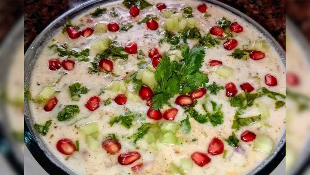 अब इस फेंटे हुए दही में कद्दूकस किया हुआ खीरा और गाजर मिलाएं। साथ ही, बारीक कटा हुआ प्याज और टमाटर भी डाल दें।