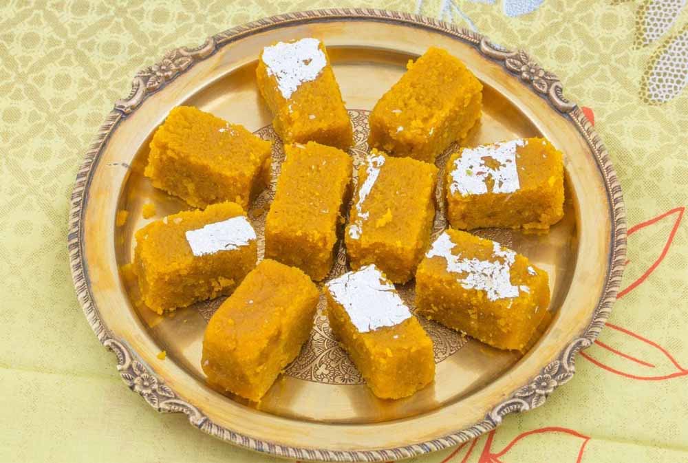 जब बर्फी जम जाए तो इसे अपनी पसंद के आकार में काट लें। बेसन की बर्फी बनकर तैयार है।
