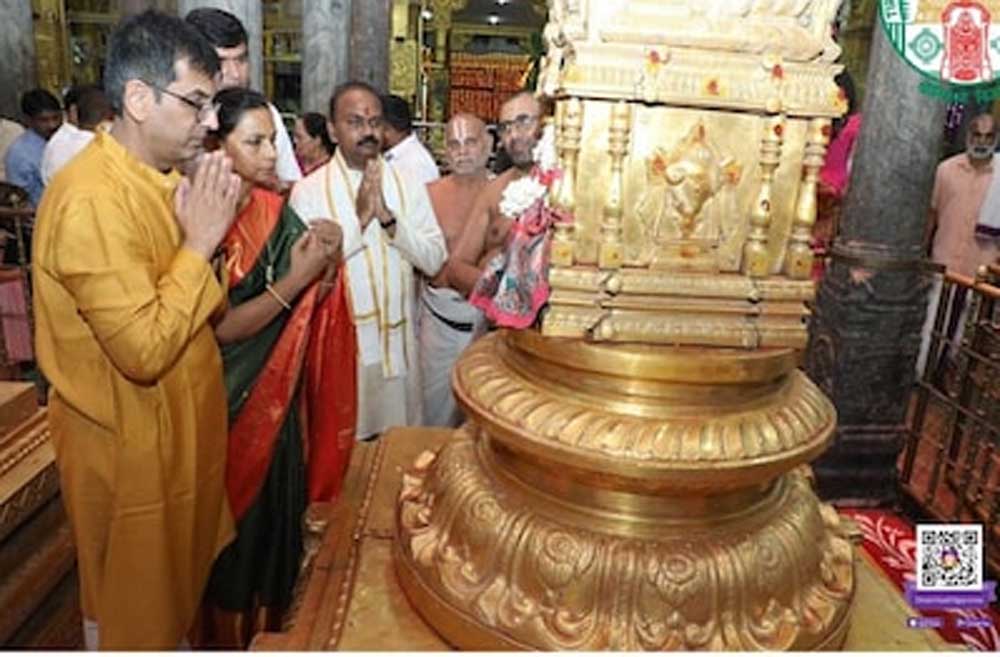 खास वैकुंठ पंक्ति से मंदिर में प्रवेश करने के बाद सीजेआई गर्भगृह में पहुंचे और भगवान वेंकटेश की पूजा की। दर्शन के बाद सीजेआई चंद्रचूड़ और उनके परिवार को रंगनायकुला मंडपम के पुजारी ने आशीर्वाद दिया। टीटीडी के कार्यकारी अधिकारी जे श्यामला राव ने उन्हें भगवान वेंकटेश का पोर्ट्रेट और प्रसाद दिया।