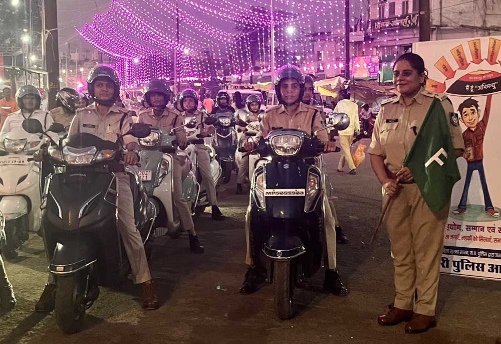 महिलाओं व बालिकाओं के विरूद्ध घटित हो रहे, अपराधों एवं घरेलू हिंसा की रोकथाम तथा सुरक्षित वातावरण उपलब्ध कराने के उद्देश्य से डिण्डौरी पुलिस द्वारा 03.10.2024 से 12.10.2024 तक जागरूकता कार्यक्रम "अभिमन्यु" अभियान चलाया जा रहा है । जिसके तहत 05.10.2024 को महिला पुलिस बल डिण्डौरी द्वारा वाहन रैली निकाल कर महिलाओं व बालिकाओं को उनके अधिकारों के प्रति जागरूक किया गया । रैली का शुभारम्भ पुलिस अधीक्षक श्रीमति वाहनी सिंह द्वारा रैली को हरी झंडी दिखाकर किया गया । रैली के माध्यम से पुलिस अधीक्षक डिण्डौरी द्वारा डिण्डौरी शहर में स्थापित प्रतिमा स्थलों , सांस्कृतिक कार्यक्रम स्थलो एवं गरबा स्थलों पर पहुंचकर व्यवस्थों का जायजा लेते हुये। महिलाओं की सुरक्षा संबंधी आवश्यक दिशा निर्देश जारी किये गये, साथ ही पोस्टर एवं बैनर के माध्यम से महिलाओं एवं बालिकाओं को उनके अधिकारो एवं सुरक्षा उपायों की जानकारी भी दी गयी । पुलिस द्वारा उक्त स्थलों में महिलाओं के अधिकार एवं सुरक्षा संबंधी हेल्प लाईन नंबरो के बैनर लगवाये गये, जिससे अधिक से अधिक महिलाओं एवं बालिकाओं को उनके अधिकारो की जानकारी हो सकें ।