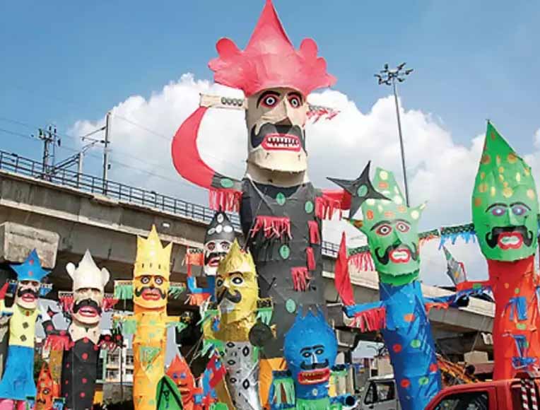 दशहरा पर रावण दहन को लेकर तैयारियां तेज हो गई हैं। इसी बीच मध्य प्रदेश के ग्वालियर में दशहरे के मौके पर लगने वाला रावण बाजार सज चुका है। इस बाजार में एक फीट से लेकर 25 फीट तक रावण बिकने आए हैं, जिनकी कीमत 100 रुपए से लेकर 5 हजार रुपए तक है।