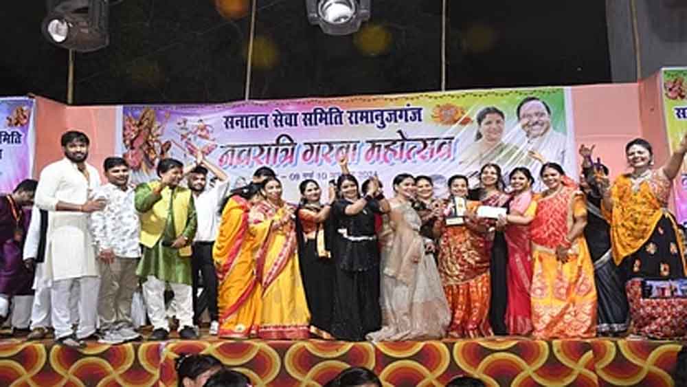 गौरतलब है कि सनातन सेवा समिति के द्वारा गरबा महोत्सव का आयोजन 9 एवं 10 अक्टूबर को कराया गया आयोजन को लेकर कई दिन पूर्व से व्यापक स्तर में तैयार की गई थी। गांधी मैदान को भव्य रूप से समिति के द्वारा सजाया गया था बेहतरीन लाइटिंग, साउंड सहित अन्य व्यवस्थाएं की गई थी आयोजन के पहले दिन भारी भीड़ उमड़ी जिस कारण से दूसरे दिन प्रतियोगिता को लेकर आवश्यक व्यवस्थाएं की गई मंच के सामने बड़ा डी बनाया गया जिसमें प्रतियोगिता में सम्मिलित लोग अपनी प्रस्तुति दे सके वही सामूहिक रूप से गरबा खेलने के लिए भी गोला में बरीगेट्स कराया गया था ताकि अनावश्यक लोगों की एंट्री अंदर न हो सके आयोजन को लेकर पूरे समय समिति के लोग सक्रिय रहे वहीं पुलिस बल भी काफी संख्या में उपस्थित रहा। कार्यक्रम शैलेश गुप्ता पूर्व नगर पंचायत उपाध्यक्ष संरक्षक रहे वही संपूर्ण आयोजन अश्वनी गुप्ता के नेतृत्व में आयोजित हुआ जिसके साथ सहयोगी आकाश, गुप्ता सिद्धांत यादव,शुभम गुप्ता रहे। आयोजन समिति के शैलेश गुप्ता एवं अश्वनी गुप्ता ने बताया कि आयोजन को आने वाले समय में और भव्य रूप से आयोजित किया जाएगा।