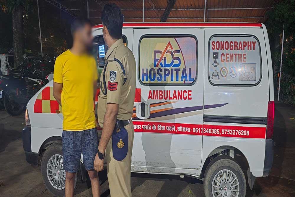 रात्रि कोतवाली पुलिस द्वारा कोतमा रोड पर चेकिंग के दौरान आर.डी.एस. हास्पिटल कोतमा की एम्बुलेंस MP18 CA 4589 ( मारूती ईको गाड़ी ) के चालक धर्मेन्द्र प्रजापति पिता आर. के. प्रजापति उम्र 32 साल निवासी ग्राम कटकोना थाना बिजुरी जिला अनूपपुर को शराब के नशे में वाहन चलाते पाये जाने पर ब्रीथ एनालाईजर मशीन से जांच की जाकर धारा 185 मोटर व्हीकल एक्ट में वाहन को जप्त किया जाकर उक्त चालक के विरूद्ध प्रकरण माननीय न्यायालय पेश किया जा रहा है।
