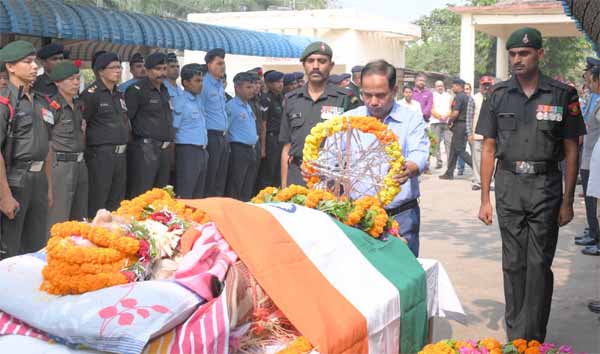 1971 युद्ध के वीर योद्धा विंग कमांडर एमबी ओझा (सेवानिवृत्त) का 10 नवंबर को 89 वर्ष की उम्र में निधन हो गया था। सोमवार 11 नवंबर को प्रात: 11.30 बजे महादेव शमशान घाट में उनके पार्थिव शरीर को अंतिम विदाई दी गई। उनका अंतिम संस्कार पूरे राजकीय सम्मान के साथ किया गया। सेना के जवानों ने अंतिम सलामी दी और पुष्प गुच्छ अर्पित किए। रायपुर कलेक्टर डा.गौरव कुमार सिंह व विधायक पुरंदर मिश्रा ने भी उनके शव को ससम्मान कांधा दिया। सेना के अधिकारी व जवान, जनप्रतिनिधिगण, अधिकारीगण व श्री ओझा के परिजन उपस्थित रहे।