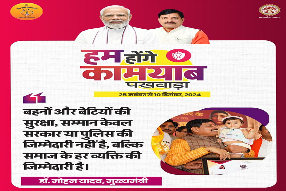 "हम होंगे कामयाब" पखवाडा में आयोजित कार्यशाला 'महिला सुरक्षा संवाद' के दूसरे दिन उप मुख्यमंत्री राजेन्द्र शुक्ल ने कहा कि महिलाओं की सुरक्षा सुनिश्चित करने के लिए सरकारी विभागों और नागरिक समाज के बीच समन्वय की महत्वपूर्ण भूमिका निभाते है। उन्होंने कहा कि मध्यप्रदेश सरकार ऐसा पारिस्थितिकी तंत्र बनाने के लिये प्रतिबद्ध है, जहां महिलाएं हिंसा और भेदभाव के बिना आगे बढ़ सकें।