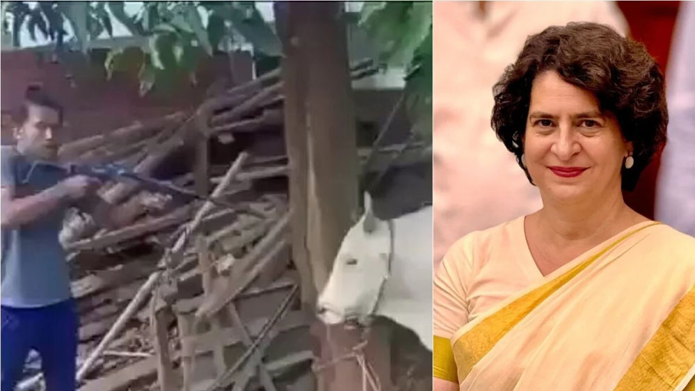 वायरल वीडियो में एक शख्स गाय को सिर में गोली मारते हुए नजर आ रहा है। जब गाय बंदूक की पहली गोली से नहीं मरती है तो फिर वह शख्स बड़ी बेरहमी से उसे दूसरी गोली मारकर उसकी जान ले लेता है। वीडियो में गोली लगने पर गाय को तड़पते हुए देखा जा सकता है। इस वीडियो को यह बताकर वायरल किया जा रहा है कि ‘यह बर्बर शख्स केरल कांग्रेस का मीडिया प्रभारी मोहम्मद मुजाहिद इस्लाम है। उसने प्रियंका गांधी की जीत का जश्न मनाने के लिए एक गाय के सिर में गोली मार दी। इस वीडियो को तब तक शेयर करें जब तक यह भारत के गृह मंत्रालय तक न पहुंच जाए और उसे गिरफ्तार न कर लिया जाए।’