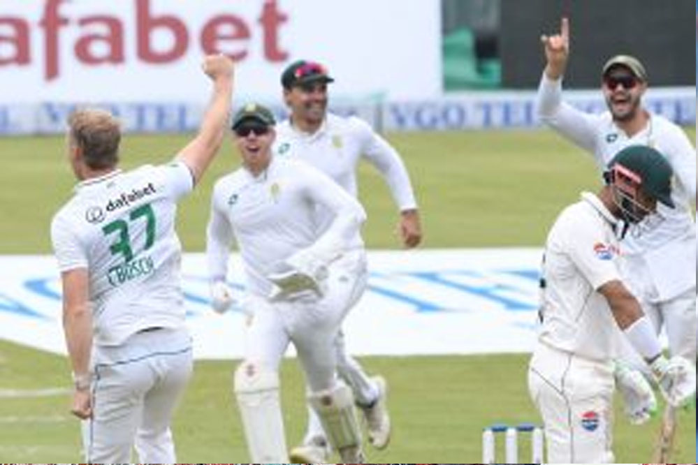 पाकिस्तान ने पहली पारी में 211 रन बनाए. उसकी ओर से कामराम गुलाम ने सबसे ज्यादा 54 रन की पारी खेली जबकि आमिर जमाल 28 रन बनाकर दूसरे बड़े स्कोरर रहे. साउथ अफ्रीका की ओर से डेन पीटरसन ने सबसे ज्यादा 5 विकेट चटकाए जबकि बॉश के खाते में 4 विकेट आया. पाकिस्तान के पहली पारी 211 रन के जवाब में साउथ अफ्रीका ने पहले दिन का खेल खत्म होने पर 3 विकेट पर 82 रन बनाए. एडेन मार्करम 47 रन पर नाबाद हैं. दूसरे छोर से कप्तान बावुमा साथ निभा रहे हैं.