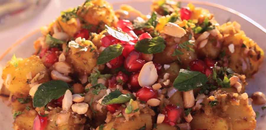 तैयार चाट को धनिया पत्ती और अनार के दानों से गार्निश करें।