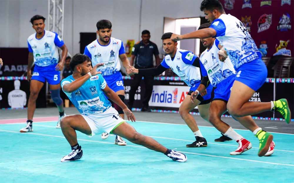रचित यादव ने सुपर 10 करते हुए मैच पलट दिया। जबकि नवनीत नागर और आयुष कुमार ने हाई-5 स्कोर किए। दिल्ली की तरफ से शुभम भिड़ुरी ने 11 पॉइंट और विनोद पाल ने बेंच से हाई-5 किया, लेकिन टीम का प्रदर्शन कमजोर रहा। दूसरे मुकाबले में हम्पी हीरोज ने पंचाला प्राइड को 46-21 से हराया। पंचाला प्राइड पूरे डिवीजन में एक भी मैच नहीं जीत पाई। हम्पी के चेतन जांगमा और करुपसागर डी ने 11-11 रेड पॉइंट जुटाए। दर्शन आर ने शानदार डिफेंस करते हुए हाई-5 स्कोर किया।