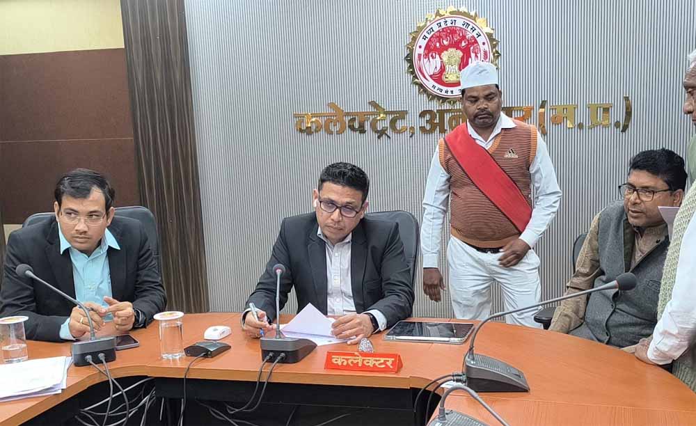 कलेक्टर श्री हर्षल पंचोली ने मंगलवार को जनसुनवाई में जिले के नगरीय एवं ग्रामीण क्षेत्रों से आए आवेदकों की समस्याएं सुनी। जनसुनवाई में 46 आवेदन प्राप्त हुए। कलेक्टर ने जनसुनवाई में आए हर एक आवेदक से धैर्यपूर्वक उनकी समस्याओं पर चर्चा की और उन्हें उनके शीघ्र निराकरण का आश्वासन भी दिया। उन्होंने मौके पर मौजूद अधिकारियों को नागरिकों से प्राप्त आवेदनों पर संवेदनशील रुख अपनाते हुए निराकरण करने के निर्देश दिए। उन्होंने आवेदकों की समस्याओं पर संबंधित क्षेत्र के अधिकारियों को कार्यवाही करने के निर्देश दिए। जनसुनवाई में जिला पंचायत के मुख्य कार्यपालन अधिकारी श्री तन्मय वशिष्ठ शर्मा, अनुविभागीय अधिकारी राजस्व अनूपपुर श्री सुधाकर सिंह बघेल सहित विभिन्न विभागों के जिला अधिकारीगणों ने भी आवेदकों की समस्याएं सुनी।