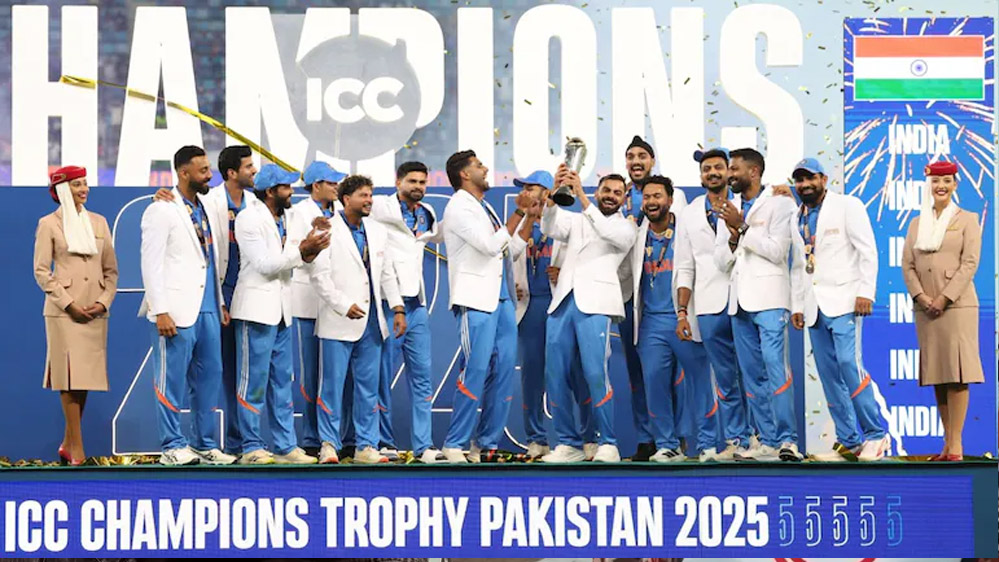 मुख्यमंत्री डॉ. यादव ने समस्त राष्ट्रवासियों को इस उपलब्धि के लिए हार्दिक बधाई दी है। मुख्यमंत्री डॉ. यादव ने कहा कि यह और भी हर्ष और गर्व की बात है कि भारत ने तीन बार चैंपियन ट्रॉफी जीत कर इतिहास रचा है। दो बार स्वतंत्र रूप से और एक बार संयुक्त रूप से भारत ने यह स्पर्धा जीती है। इस तरह भारत दुनिया का एक मात्र देश है जिसे तीन बार चैम्पियन ट्रॉफी में विजय मिली है। मुख्यमंत्री डॉ. यादव ने भारतीय टीम के कप्तान रोहित शर्मा सहित सभी खिलाड़ियों को बधाई दी है। भारत की ओर से कुलदीप यादव ने न्यूजीलैंड के दो महत्वपूर्ण विकेट लेकर हमारी सफलता के मार्ग को आसान किया। अन्य गेंदबाज भी बहुत अच्छा प्रदर्शन करने में सफल रहे। इस तरह टीम भावना ने भारत को यह महत्वपूर्ण जीत दिलवाई।