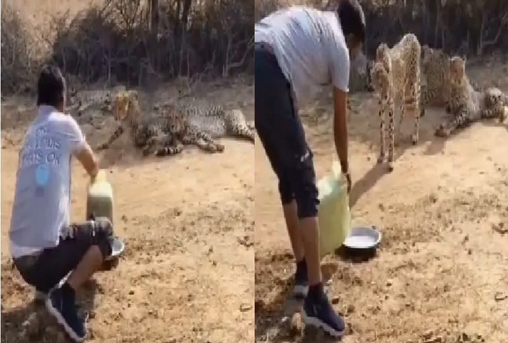 कूनो नेशनल पार्क में एक ग्रामीण ने प्यासे चीता और उसके शावकों को पानी पिलाया, वायरल वीडियो