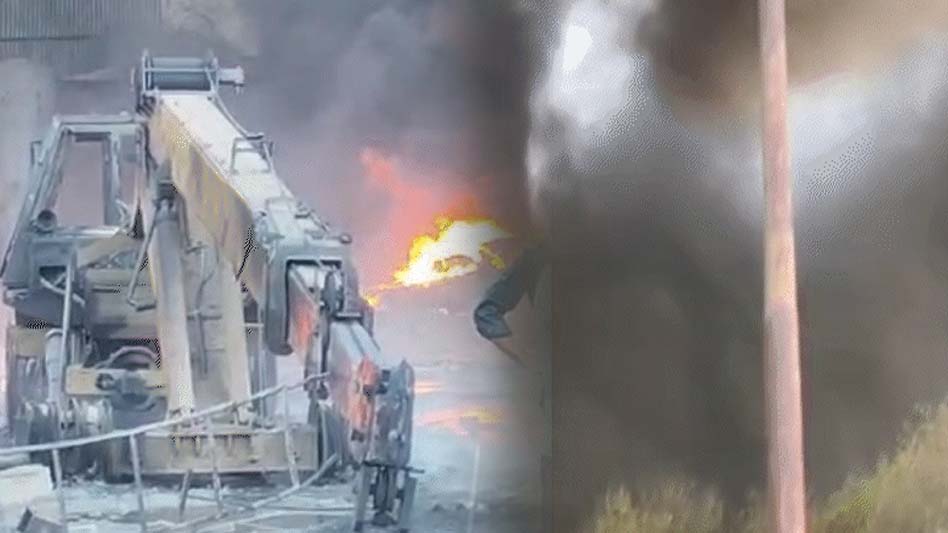 दो क्रेन जलकर राख