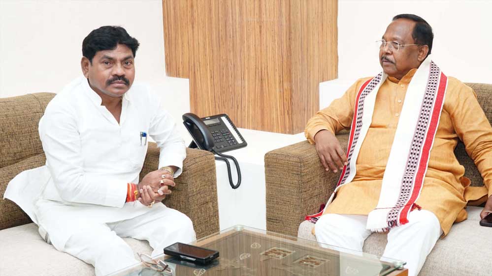 रायपुर : उत्तरप्रदेश के राज्य मंत्री संजय सिंह गौड़ ने मंत्री रामविचार नेताम से की मुलाकात